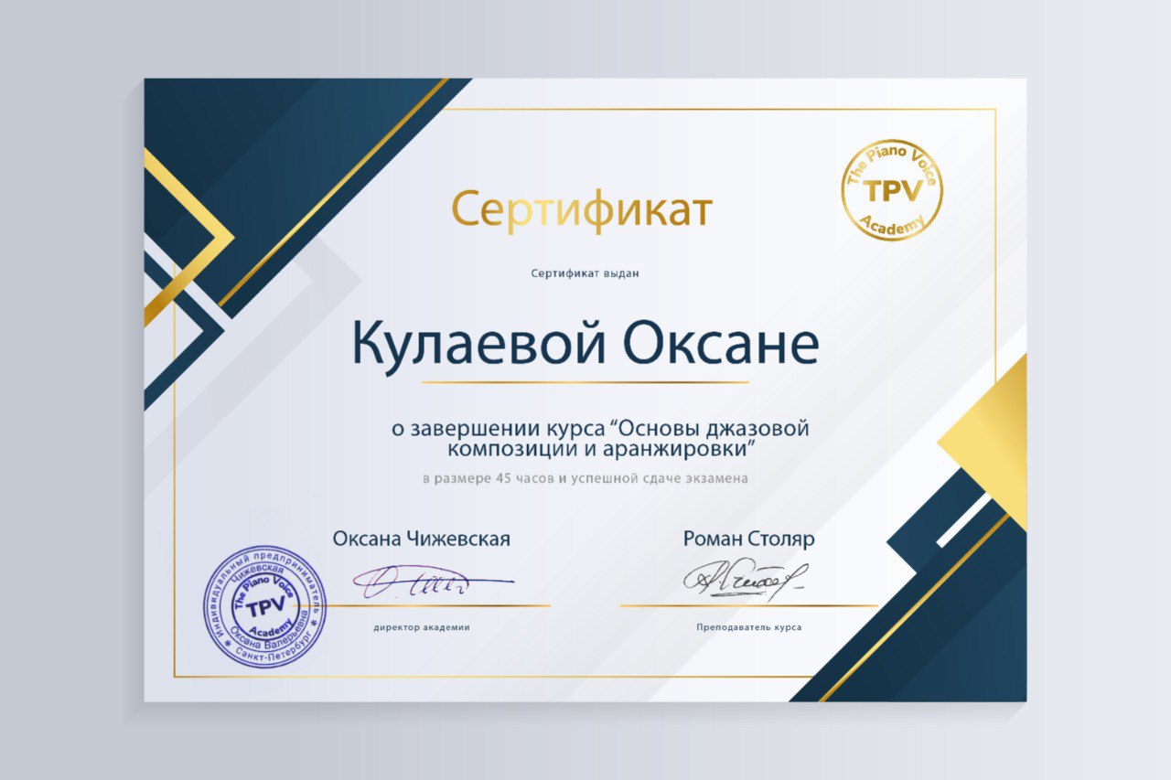 После этого курса вы получите 14 собственных джазовых стандартов в типичных джазовых стилях, профессионально и грамотно написанных в самых популярных джазовых стилях, под полным контролем преподаватели Романа Столяра.